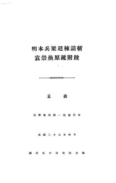 | 网盘路径:/时光图书馆珍藏系列/书籍文件/老图书/《明本兵梁廷栋请斩袁崇焕原疏附跋》电子版合集.db | ||