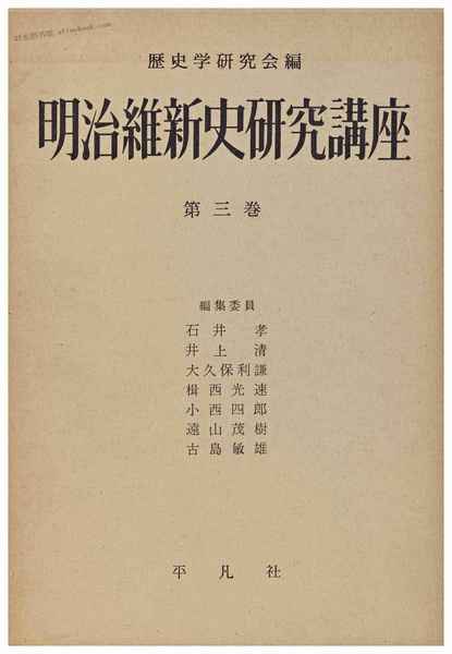 | 网盘路径:/时光图书馆珍藏系列/书籍文件/老图书/《明治維新史研究講座 第三巻[明治维新史研究讲座_第三卷]》电子版合集.db | ||