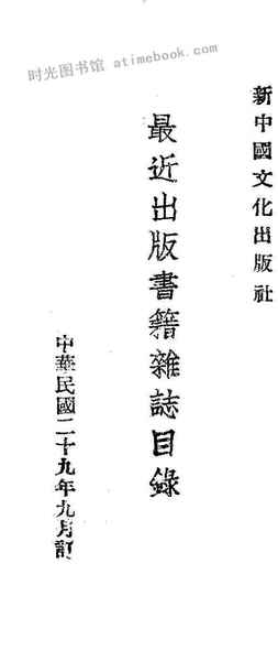 | 网盘路径:/时光图书馆珍藏系列/书籍文件/老图书/《最近出版书籍杂志目录》电子版合集.db | ||