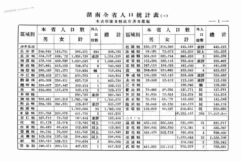 | 网盘路径:/时光图书馆珍藏系列/书籍文件/老图书/《民国二十一年湖南省人口统计》电子版合集.db | ||