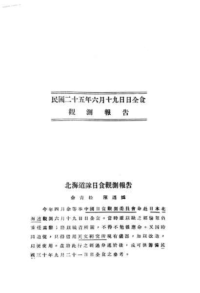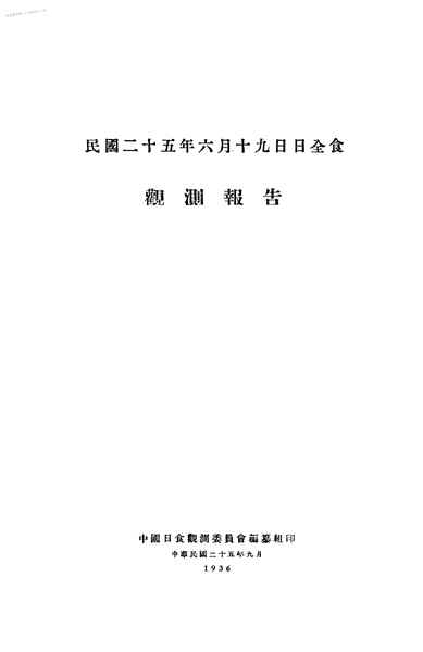 | 关键词:民国二十五年六月十九日日全食观测报告, | ||