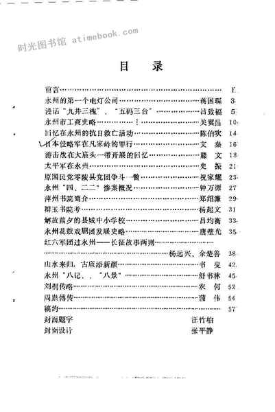 | 网盘路径:/时光图书馆珍藏系列/书籍文件/老图书/《永州市文史资料_第1辑》电子版合集.db | ||