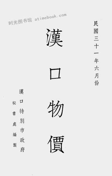 | 网盘路径:/时光图书馆珍藏系列/书籍文件/老图书/《汉口物价(民国三十一年六月份)》电子版合集.db | ||
