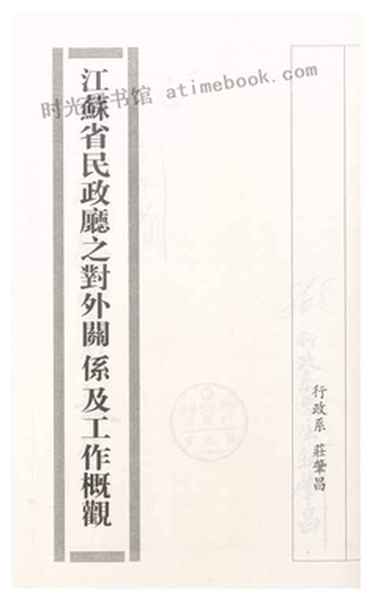 | 网盘路径:/时光图书馆珍藏系列/书籍文件/老图书/《江苏省民政厅之对外关系及工作概况》电子版合集.db | ||