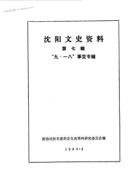 | 网盘路径:/时光图书馆珍藏系列/书籍文件/老图书/《沈阳文史资料_第7辑_九一八事变专辑》电子版合集.db | ||