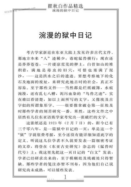 | 网盘路径:/时光图书馆珍藏系列/书籍文件/老图书/《涴漫的狱中日记:瞿秋白作品精选》电子版合集.db | ||