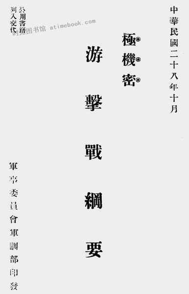 | 网盘路径:/时光图书馆珍藏系列/书籍文件/老图书/《游击战纲要》电子版合集.db | ||