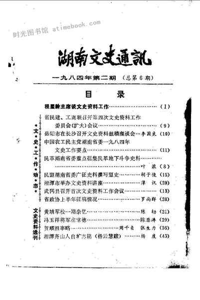 | 网盘路径:/时光图书馆珍藏系列/书籍文件/老图书/《湖南文史通讯_总第6期》电子版合集.db | ||
