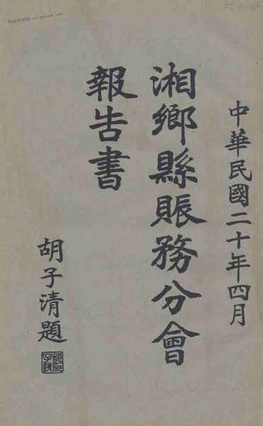 | 网盘路径:/时光图书馆珍藏系列/书籍文件/老图书/《湘乡县赈务分会报告书》电子版合集.db | ||