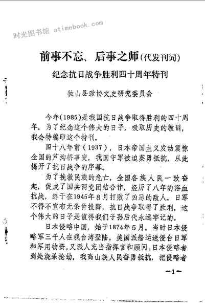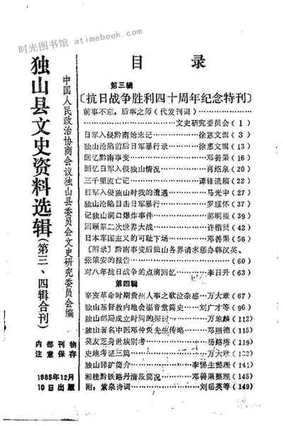 | 网盘路径:/时光图书馆珍藏系列/书籍文件/老图书/《独山文史资料选辑_第3、4辑合刊(_抗日战争胜利40周年纪念特刊)》电子版合集.db | ||