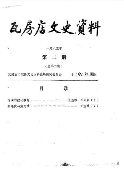 文件下载 | 名称:《瓦房店文史资料_1985年第2期_总第2期》电子版合集 | |
