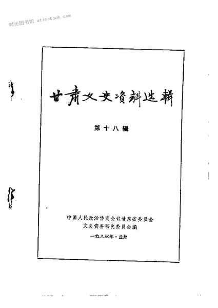 | 网盘路径:/时光图书馆珍藏系列/书籍文件/老图书/《甘肃文史资料选辑_第18辑》电子版合集.db | ||