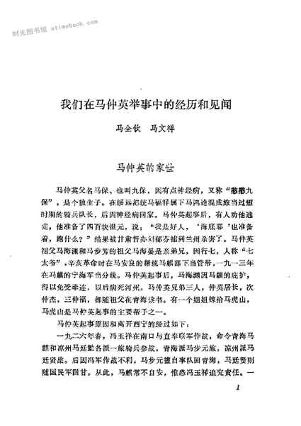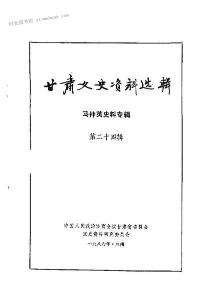 | 网盘路径:/时光图书馆珍藏系列/书籍文件/老图书/《甘肃文史资料选辑_第24辑_马仲英史料专辑》电子版合集.db | ||