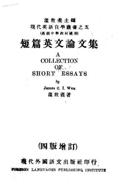 | 网盘路径:/时光图书馆珍藏系列/书籍文件/老图书/《短篇英文论文集(高级中学教材适用)》电子版合集.db | ||