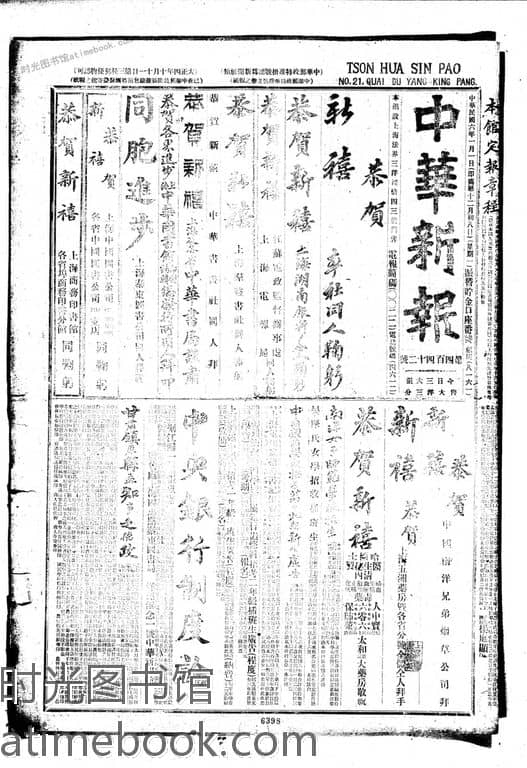 网盘路径:/时光图书馆珍藏系列/书籍文件/老报纸/上海/《中华新报》(上海)1915-1926/《中华新报》(上海)1917年影印版合集下半年.db