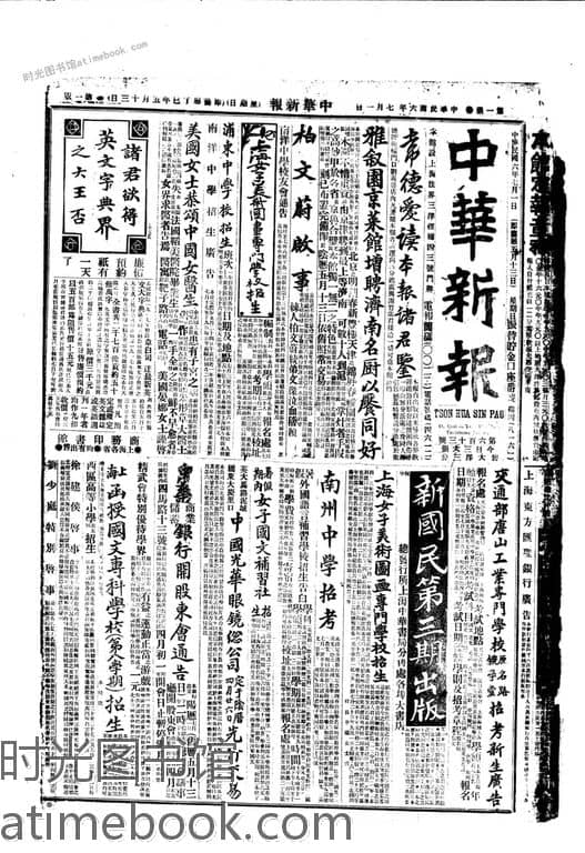 网盘路径:/时光图书馆珍藏系列/书籍文件/老报纸/上海/《中华新报》(上海)1915-1926/《中华新报》(上海)1917年影印版合集下半年.db