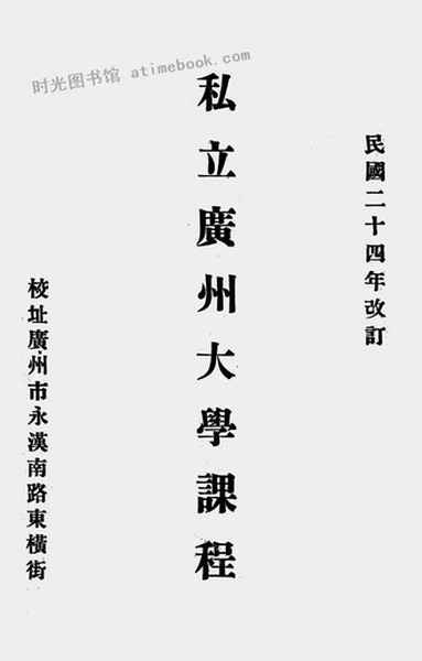 | 网盘路径:/时光图书馆珍藏系列/书籍文件/老图书/《私立广州大学课程》电子版合集.db | ||