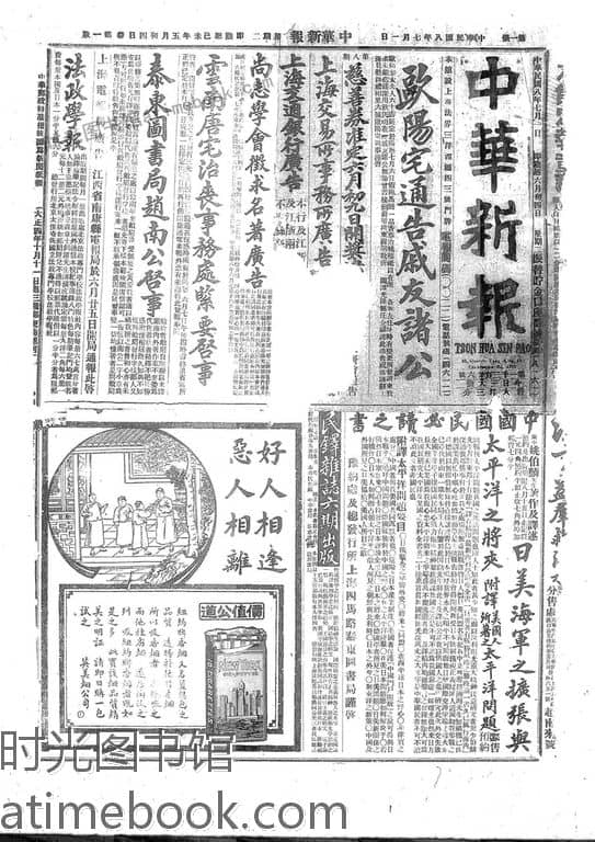 网盘路径:/时光图书馆珍藏系列/书籍文件/老报纸/上海/《中华新报》(上海)1915-1926/《中华新报》(上海)1919年影印版合集下半年.db