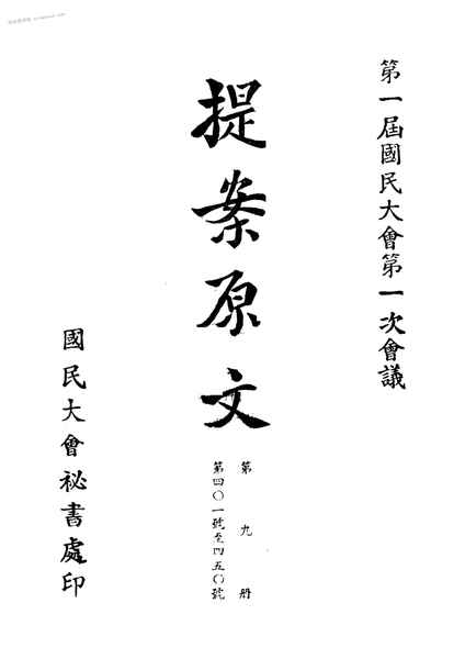 | 网盘路径:/时光图书馆珍藏系列/书籍文件/老图书/《第一届国民大会第一次会议提案原文_第9册》电子版合集.db | ||