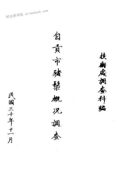 | 网盘路径:/时光图书馆珍藏系列/书籍文件/老图书/《自贡市猪鬓概况地调查》电子版合集.db | ||
