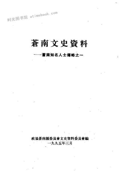 | 网盘路径:/时光图书馆珍藏系列/书籍文件/老图书/《苍南文史资料_第10辑_苍南知名人士传略之一》电子版合集.db | ||