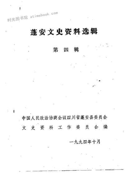 | 网盘路径:/时光图书馆珍藏系列/书籍文件/老图书/《蓬安文史资料选辑_第4辑》电子版合集.db | ||