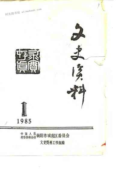 | 网盘路径:/时光图书馆珍藏系列/书籍文件/老图书/《衡阳城南文史文史资料(1985年)_第1辑》电子版合集.db | ||