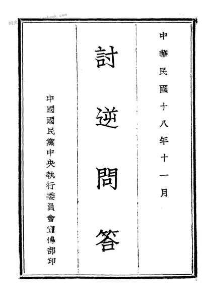 | 网盘路径:/时光图书馆珍藏系列/书籍文件/老图书/《讨逆问答(中华民国十八年十一月)》电子版合集.db | ||
