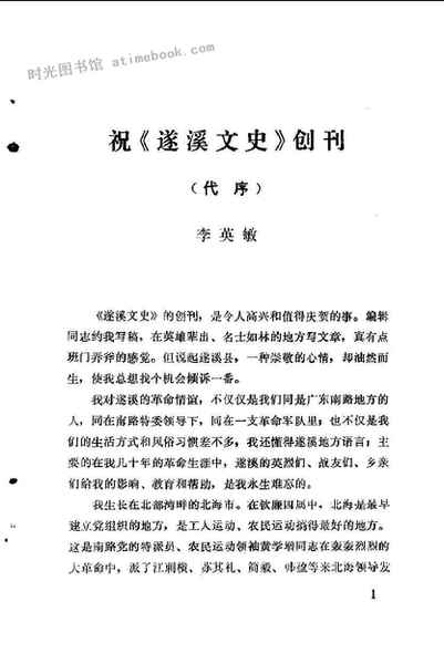 | 网盘路径:/时光图书馆珍藏系列/书籍文件/老图书/《遂溪文史_第1辑》电子版合集.db | ||