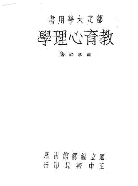 | 网盘路径:/时光图书馆珍藏系列/书籍文件/老图书/《部定大学用书_教育心理学》电子版合集.db | ||