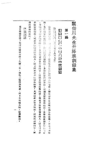 | 网盘路径:/时光图书馆珍藏系列/书籍文件/老图书/《阎伯川先生升降旗训话集》电子版合集.db | ||