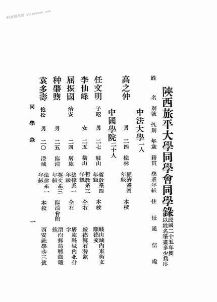 | 网盘路径:/时光图书馆珍藏系列/书籍文件/老图书/《陕西旅平大学同学会同学录》电子版合集.db | ||