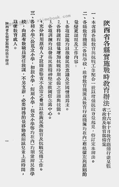 | 网盘路径:/时光图书馆珍藏系列/书籍文件/老图书/《陕西省各县实施战时教育办法》电子版合集.db | ||