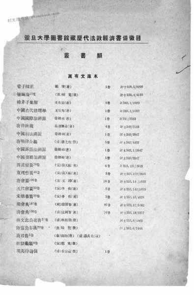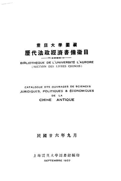 | 网盘路径:/时光图书馆珍藏系列/书籍文件/老图书/《震旦大学图藏:历代法政经济书备徵目》电子版合集.db | ||