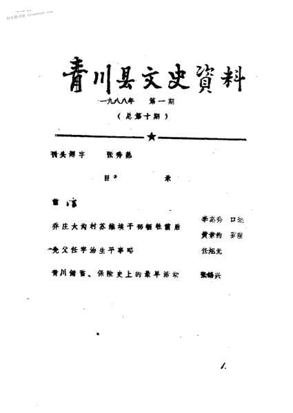 | 网盘路径:/时光图书馆珍藏系列/书籍文件/老图书/《青川县文史资料_1988年_第1期_总第1期》电子版合集.db | ||