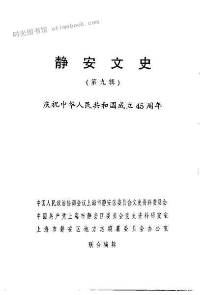 | 网盘路径:/时光图书馆珍藏系列/书籍文件/老图书/《静安文史_第9辑(庆祝中华人民共和国成立45周年)》电子版合集.db | ||