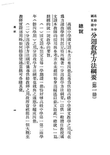 文件下载 | 名称:《高级中学国文读本分周教学方法纲要》电子版合集 | |