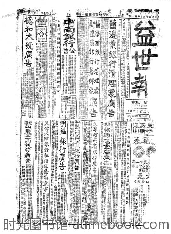 书籍名称:《益世报》(天津)1925年影印版上半年