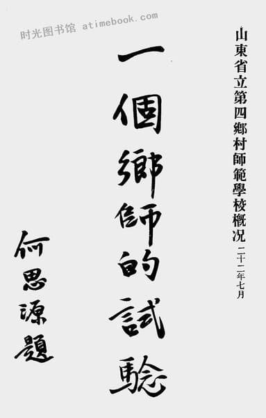 | 网盘路径:/时光图书馆珍藏系列/书籍文件/老图书/《一个乡师的试验(山东省立第四乡村师范学校概况)》电子版合集.db | ||