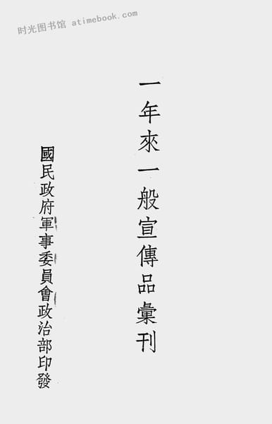 | 网盘路径:/时光图书馆珍藏系列/书籍文件/老图书/《一年来一般宣传品汇刊》电子版合集.db | ||