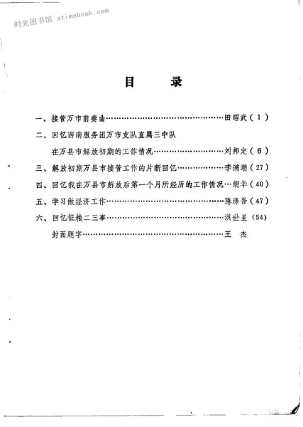 | 网盘路径:/时光图书馆珍藏系列/书籍文件/老图书/《万县市文史资料_第28辑_附1-28期目录》电子版合集.db | ||