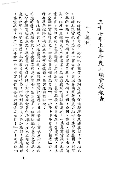 | 网盘路径:/时光图书馆珍藏系列/书籍文件/老图书/《三十七年上半年度工矿贷款报告》电子版合集.db | ||