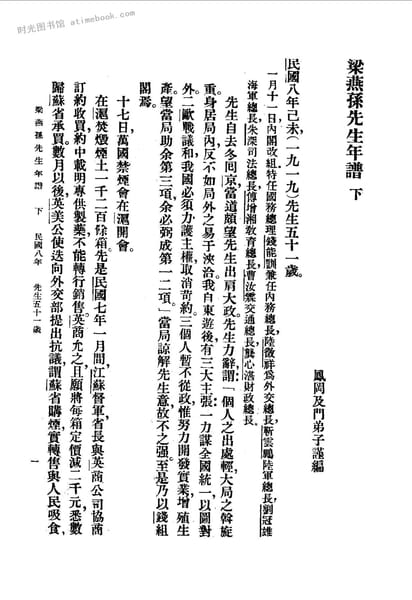 | 网盘路径:/时光图书馆珍藏系列/书籍文件/老图书/《三水梁燕孙(士诒)先生年谱(2)》电子版合集.db | ||