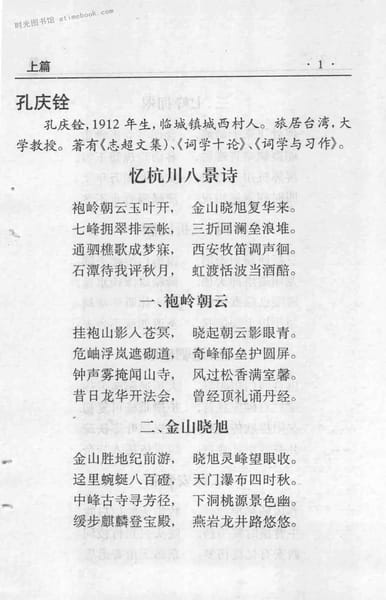 | 网盘路径:/时光图书馆珍藏系列/书籍文件/老图书/《上杭文史资料_第22期_琴岗诗词九百首》电子版合集.db | ||