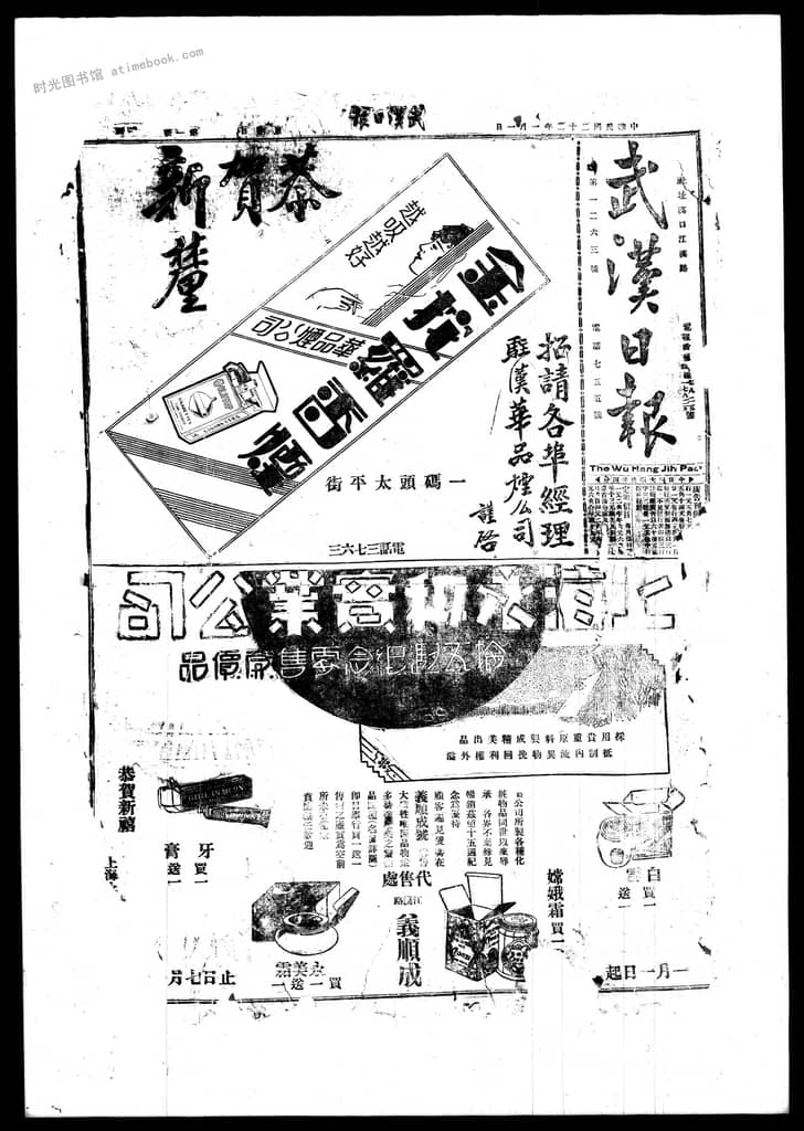 网盘路径:/时光图书馆珍藏系列/书籍文件/老报纸/湖北/《武汉日报》(汉口)1933-1949/《武汉日报》(汉口)1933年影印版合集下半年.db
