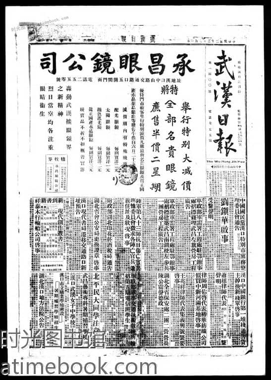 书籍名称:《武汉日报》(汉口)1933年影印版合集下半年