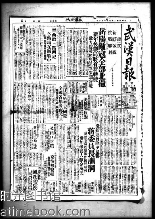 书籍名称:《武汉日报》(汉口)1939-1941年影印版合集
