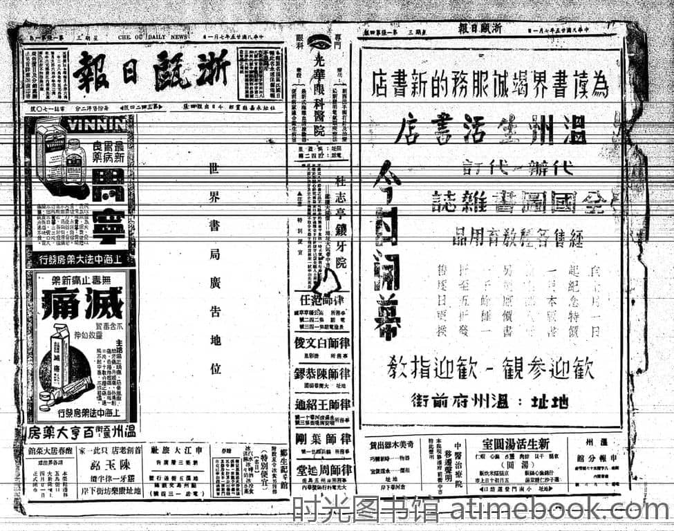 书籍名称:《浙瓯日报》(浙江永嘉)1936年影印版下半年