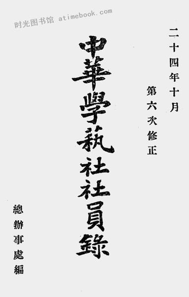 | 网盘路径:/时光图书馆珍藏系列/书籍文件/老图书/《中华学艺社社员录(第六次修正)》电子版合集.db | ||