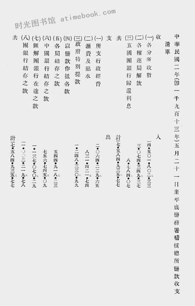 | 网盘路径:/时光图书馆珍藏系列/书籍文件/老图书/《中华民国二年五月二十一日至年底盐款总账(第一编)》电子版合集.db | ||